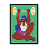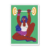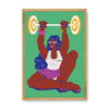 In her artist series titled Haseena Paseena, Mira Malhotra challenges the idea of physical beauty and prioritises bodily strength as a feminine ideal. She depicts a seated ‘Shaktishaali Sheila’ as she effortlessly lifts her barbell.