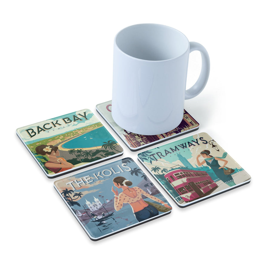 The Dallas Company's time capsule series of Bombay's glory days by Dallas Fernandes and Vivek Khandgaonkar gives us a peek into scenes from a glamorous old city. This artwork captures the Backbay - a waterbody by the coast, with Malabar Hill, Chowpatty Beach, Wilson College, Marine Drive, and Nariman Point by the sea. Created for Bombay Vintage.